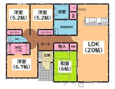 間取内容 LDK 20畳 1階  洋室 6.7畳 1階  洋室 5.2畳 1階  洋室 5.2畳 1階  和室 6畳 1階